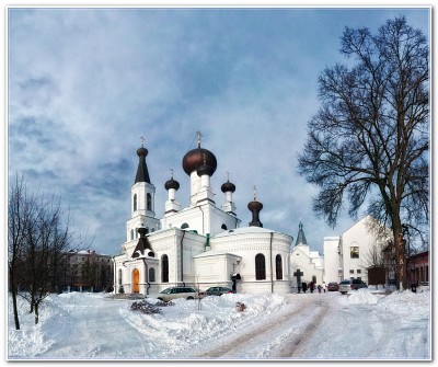 Кафедральный собор Могилев Кафедральный собор во имя Трех Святителей Василия Великого, Григория Богослова и Иоанна Златоустого --- Памятник архитектуры ретроспективно-русского стиля. Кафедральный собор Трех Святителей — главный православный храм города, памятник архитектуры начала XX века (1903—1914 гг.). Выполнен в псевдорусском стиле. Примечательно, что в храм можно войти с трех сторон. Службы в соборе часто посещал последний российский император Николай II. В 1961—1989 гг. здесь размещался клуб завода «Строммашина». В 1989 году храм возвращен верующим. После реконструкции храм со своими строгими четкими формами стал драгоценной жемчужиной города. --- Панорама Два ряда по 5 вертикальных кадров ФР 24мм (ф.ф. экв.) |