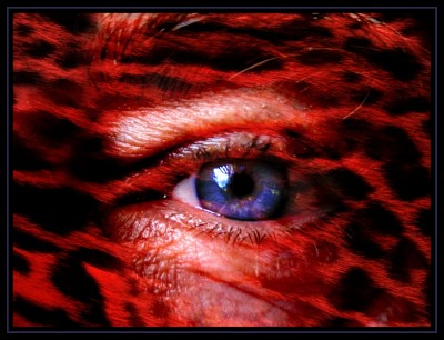 не очень удачное наложение. нет взаимодействия с кожей, смотрится как два независимых слоя. глаз стоило оставить чистым.