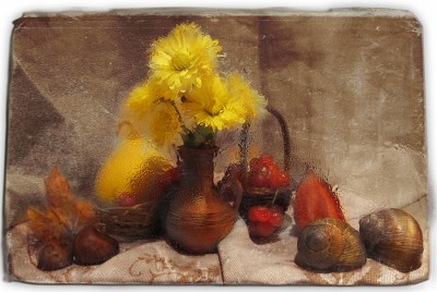 Мельник Константин - тут обработка только фактурк от обложки, а остальное фото, типа вазелиновый этюдик, через стеклышко, а фактурку наложила, потому что драпировачка сзади не очень интересно вышла, скучновато...