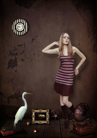 Стильно. Выразительно. Браво! (один косячек, который бросается в глаза: вшопленный граммофон не попадает в перспективу пола:))