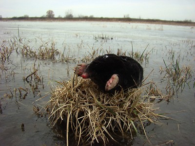 Половодье в пойме реки. Застигнутый врасплох крот замерз на островке.