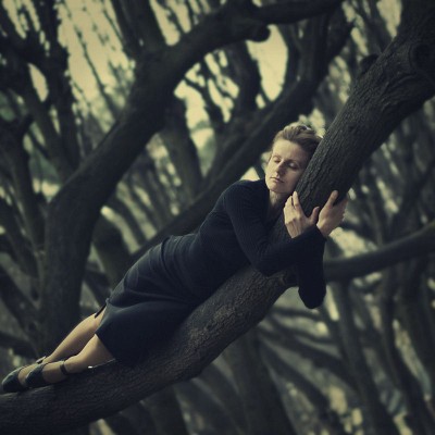 Переплетение стволов обеспечило хороший обьем. Слияние персонажа с природой , растворение в ней - это очень хорошо получилось.