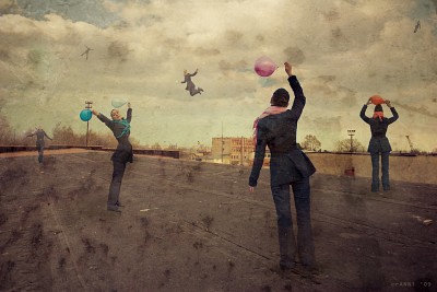 За мёдом! — Если хочешь достать мёд — главное дело в том, чтобы пчёлы тебя не заметили. И вот, значит, если шар будет зелёный, они могут подумать, что это листик, и не заметят тебя, а если шар будет синий, они могут подумать, что это просто кусочек неба, и тоже тебя не заметят. Весь вопрос — чему они скорее поверят? — А думаешь, они не заметят под шариком тебя? — Может, заметят, а может, и нет. Разве знаешь, что пчёлам в голову придёт? Я притворюсь, как будто я маленькая чёрная тучка. Тогда они не догадаются! |