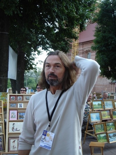 может вот так? тут, имхо, главное его лицо и лица изумлённых почитателей)), а табличка на верёвочке лишняя, личность публичная достаточно)