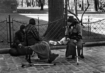 Бродяжки-попрошайки в Кракове. На время перекура исцелившиеся...