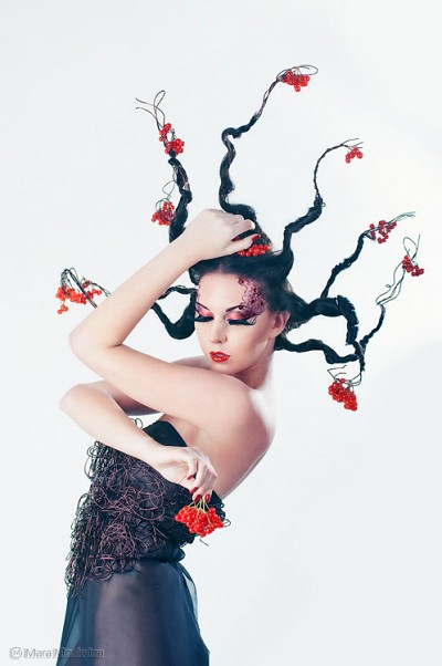 Красивая девушка, много проволоки и раздавленная по фотофону калина =)