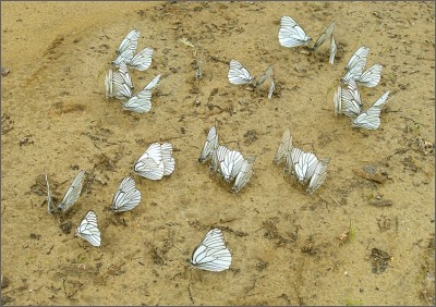 , Как объясняют энтомологи, так эти бабочки пьют воду. Сняты они на берегу лесной речушки.