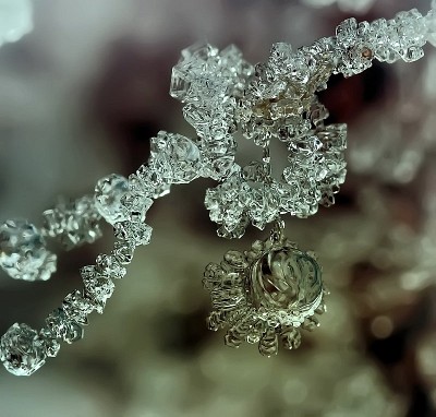 , У меня привычка такая ,называть фото по собственным ассоциациям не имеющего(иногда )ничего общего от изображения на фото,поэтому не могу сказать(т.к. фоткал зимой) а на фото изображено кристалы льда и капелька воды(застывшая)