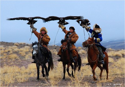 Казахская национальная забава - охота с ловчими птицами (кусбеги).