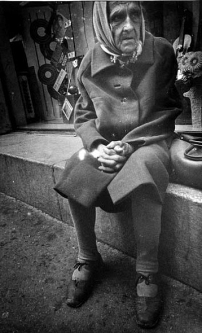 Старушка сидит на парапете