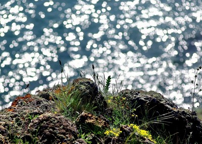 на солнечном фоне моря