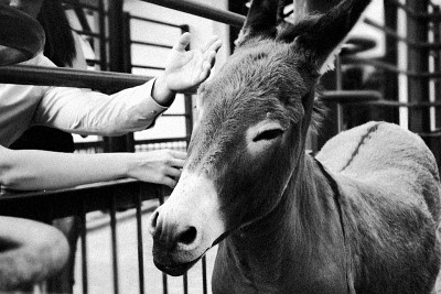 Хорошо! Только глядя на руки, которые тянутся к ослику, начинаю сомневаться, кто из них взаперти.