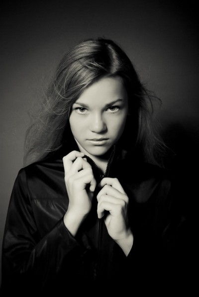 а лицо и руки кажутся заблуренными. общее впечатление, издалека, приятное, и от модели о от композиции (руки подводят к лицу)