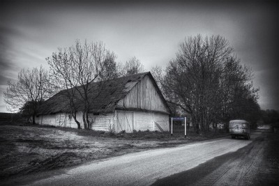 Всем спасибо за внимание к работе, не претендовал этой карточкой на что-то сверхзначимое! Согласен со всеми, что синий с красным на ч/б - лишние цвета, но цель не в цветах, а во внимании к этой детали, кот. наполняет смыслом всю работу, разрушенный сарай, грязища, дорога и ретро-автобус - только лишь дополнения...