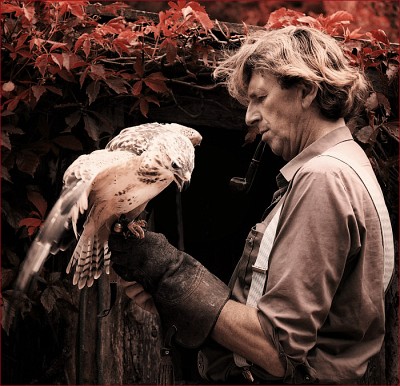 "Мы с тобой одной крови." Это - хозяин маленького заповедничка,созданного им самим. Он находит раненых животных в горах (в основном птиц,семейства орлиных),выхаживает их,отпускает на волю,но они к нему прилетают как домой.Наблюдая за ним,понимаешь,что он сам стал "представителем"горной фауны.Суров с людьми,и мягок в общении с птицами.Он и его питомцы - одно целое,они ДРУЗЬЯ! |