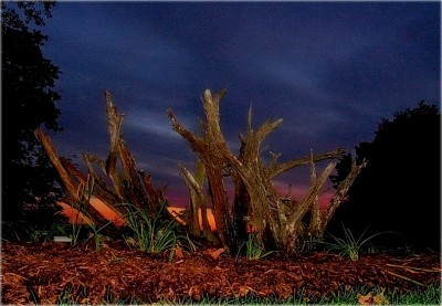 На зямлі чырвона таму, што там насыпана кары з нейкага чырвонага дрэва. Ну, колер у яе такі. Потым яшчэ захаднее святло так адценьвае. ...Зрэшты, калі б яно такім не было, то я бадай бы так зрабіла наўмысна. ...Такое маё аўтарскае бачанне гэтай тэмы... |