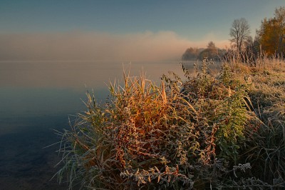 не узнала тут Дрозды, из-за тумана не видно другого берега,