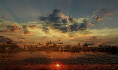 наложение двух кадров? монастырь не отражается... сплошные загадки.