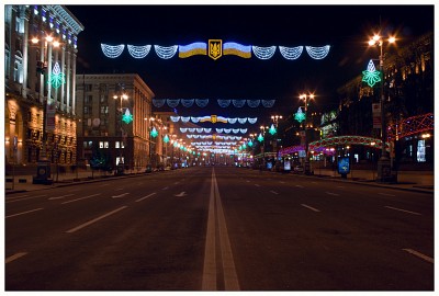 , В выходные и праздничные дни Крещатик закрыт для движения автомобилей. Можно спокойно прогуливаться всем желающим. Поскольку был небольшой мороз, то и прогуливающихся было немного. Спасибо, что заглянули.