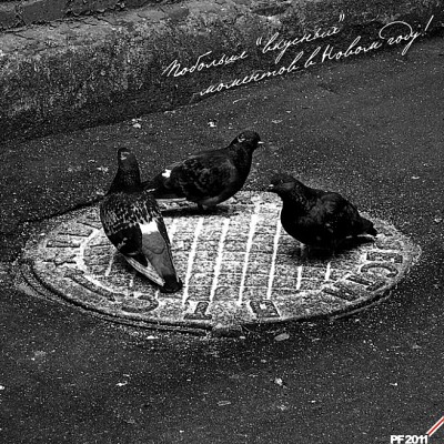 снято во дворах старого Минска, я так и не понял чем белым был посыпан люк (может мукой), но голуби водили вот такой вот хоровод:)))