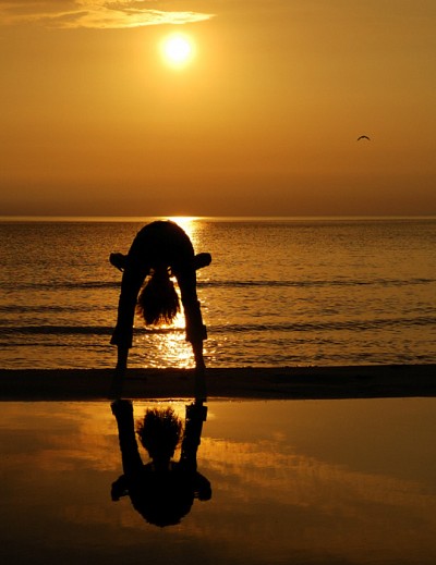 красиво небо сходится с морем по линии горизонта. и интересно, куда летит птица.