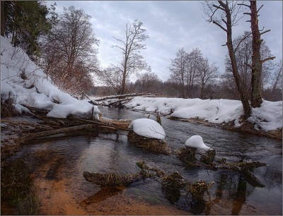 как по мне - две снежные "шапочки" ![]() но без вейдерсов глубоко в воду не зайти (я к тому,что интереснее было бы зайти в воду и снимать с точки правее,исключая как минимум две коряги) |