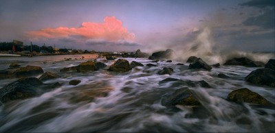 Розовое облако на фоне стихии очень интересно смотрится.