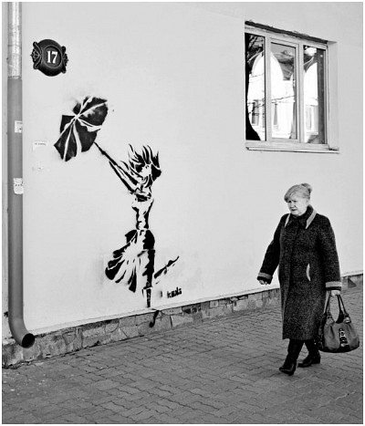 Такой примерно расклад возник в мыслях, когда увидел идущую женщину недалеко от рисунка. Сделал только один кадр. Да, наверно, можно было постоять, "словить" кого-нибудь более быстрого. Но для меня это уже как-то не то, пускай и выглядело бы более динамично.