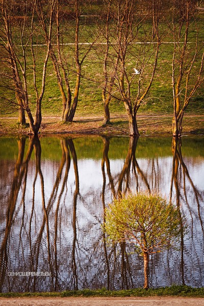 многовато центров зрительских: дерецо, чайка, отражения, сами деревья