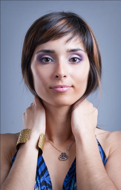 Свет приятный, но не очень интересный, подчеркивает привлекательность девушки, но не индивидуальность, настроение. Очень отвлекают украшения, они тут лишние, на мой взгляд. Еще мне очень не нравятся руки... На них приличный акцент сделан, имхо, они, как минимум, должны быть такими же гладкими и отретушированными, как лицо. В целом поза и кадрирование неудачные, на мой взгляд - плечи и грудь обрезаны, подмышками не очень красивые складочки.
