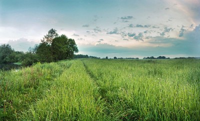 Р. Лесная, утренняя дорога вдоль берега.