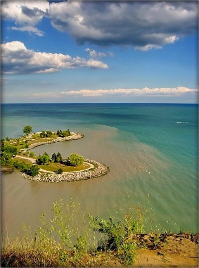 Мушу патлумачыць. Пасля тарнадаў вада ў рэках рэзка падымаеца й становіцца жоўтай. І выносяць яны ўсю гэту жоўць у Антарыё, псуючы яму ягоны бірузовы прыкід... Вост такая карцінка атрымалася праз дзень пасля ліўневых дажджоў.