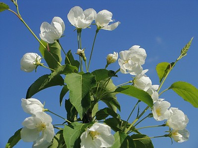 Дикая совсем маленькая яблонька на пустыре, вся в соцветиях. Рядом уже начали что-то строить. Хочу пересадить.
