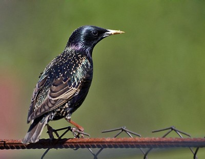 Скворушка Условия съёмки дачные... Потревожила его за приятным занятием - лакомился в мусорной куче... минут 20 прятался от меня в кустах, потом взлетел на забор, позволил мне сделать несколько кадров и улетел... |