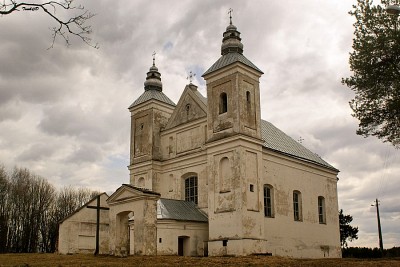 Засвирь - троицкий костел 2 "Засвирский костел и монастырь кармелитов — памятник архитектуры барокко начала XVIII в. Монастырский корпус с внутренним двориком примыкает к костелу. Поблизости стоит небольшая каменная брама. Костел — однонефный храм с двухбашенным главным фасадом и высокой алтарной апсидой. |