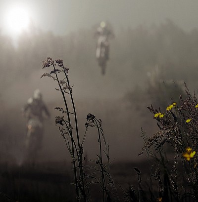 как будто бы призраки гонщиков в тумане...очень оригинально