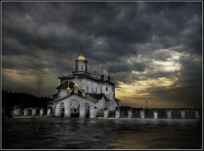 Кажется, что Храм поднялся из водной глади... Противостояние зловещему небу. И просвет уже есть!