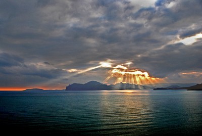 закатный душ из солнечных лучей