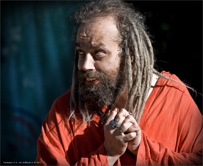 Лицедей..)....для Сатхи и Шиваитов слишком европейская внешность......но точно убежденный в своих взглядах судя по дредам......так понимаю снято на сцене какого нибудь Петербурского неформатного театра..)