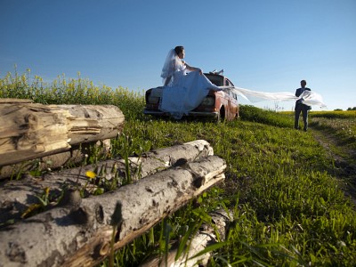 бревна вроде как и не к чему. невесты и машинки хватило бы.