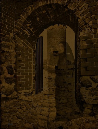 в основу легли две фотографии- башня с воротами в Сигулде (Латвия) и портрет монахини