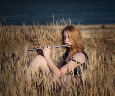и ветер играет травинками и волосами модели ...