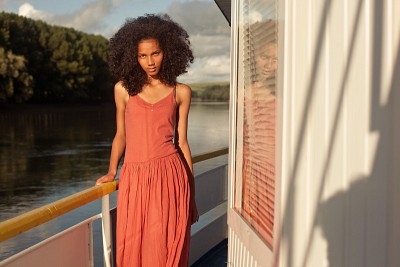 Шикарная метаморфоза. Противопоставленное отражение показывает противоположный характер - у героини пространства вокруг нее вертикальные полоски (платье, сайдинг, руки вдоль) и у отражения (горизонтальные полоски) хоть я цвет платья одинаков (но у отражения он более тусклый - это наталкивает на мысль что отражение не так излучает тепло - на первом плане у нее горизонтальные полосочки - строптива и т.д.). И последнее у героини теплый характер прическа делает ее "белой" и пушистой а в отражении убрали все наносное или стружку и обнажили натуру - Глаза и характер на лицо:super