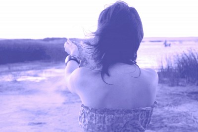 фотографию нужно смотреть, а не читать к ней коммент, и каждый видит по-разному......на этом снимке хотелось передать состояние отрешенности, погружения в себя, свои мысли, поэтому героиня отвернулась от всех спиной, в руках у нее песок, он сыплется сквозь пальцы, типа медитации какой то, а фиолетовый цвет - чтобы подчеркнуть состояние, ведь бывает когда тебе все фиолетово...