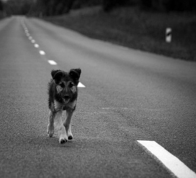 , я ехал не велике на трассе, встретил его по дороге) бежал и скулил, видимо потерялся(((