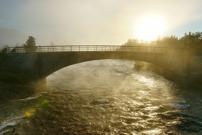 Испарения реки при холодном воздухе в контровом свете.