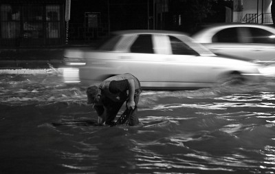После ливня дорога превратилась в реку, а этот мужик ходил и открывал ливневые решётки, причём нырял руками в воду точно, как будто видел сквозь мутный поток...