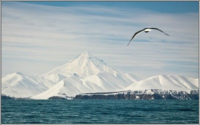 Тихий океан. Вилючинская сопка, Вилючик, потухший вулкан на Камчатке. Высота 2173 м. Крутой, почти правильный конус (стратовулкан) изрезан глубокими радиальными бороздами (барранкосами). Кратера нет. На склонах — языки застывших лавовых потоков; у северных подножий шлаковые конусы.