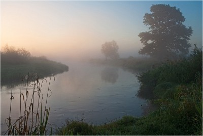 Сентябрьское утро. Только что взошедшее солнце подсветило туман над речкой