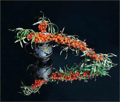 Ну а на нём струя из жёлтых ягод,